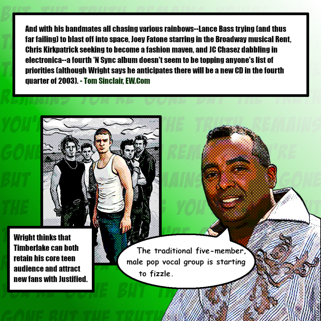 2 – Entertainment Weekly published an article about the Justified album. This graphic contains a quote attributed to *NSYNC’s manager Johnny Wright.