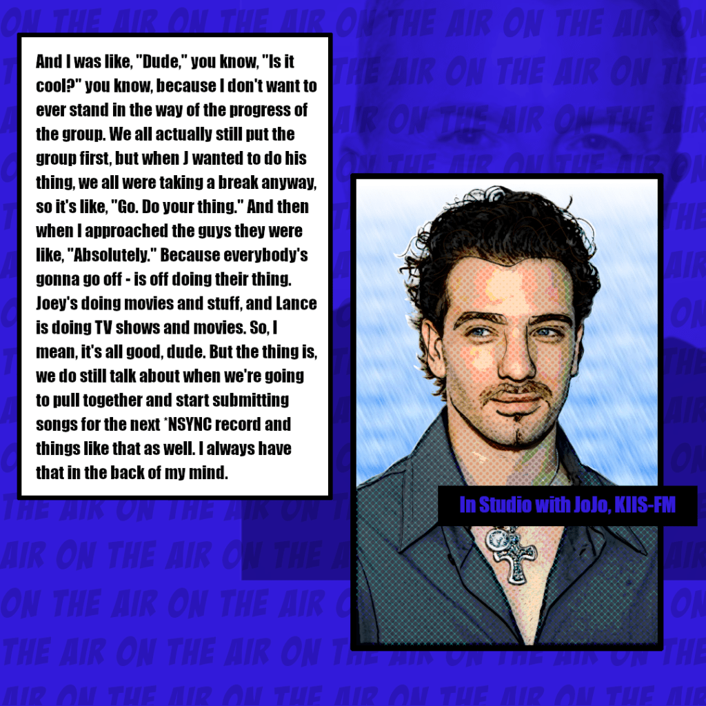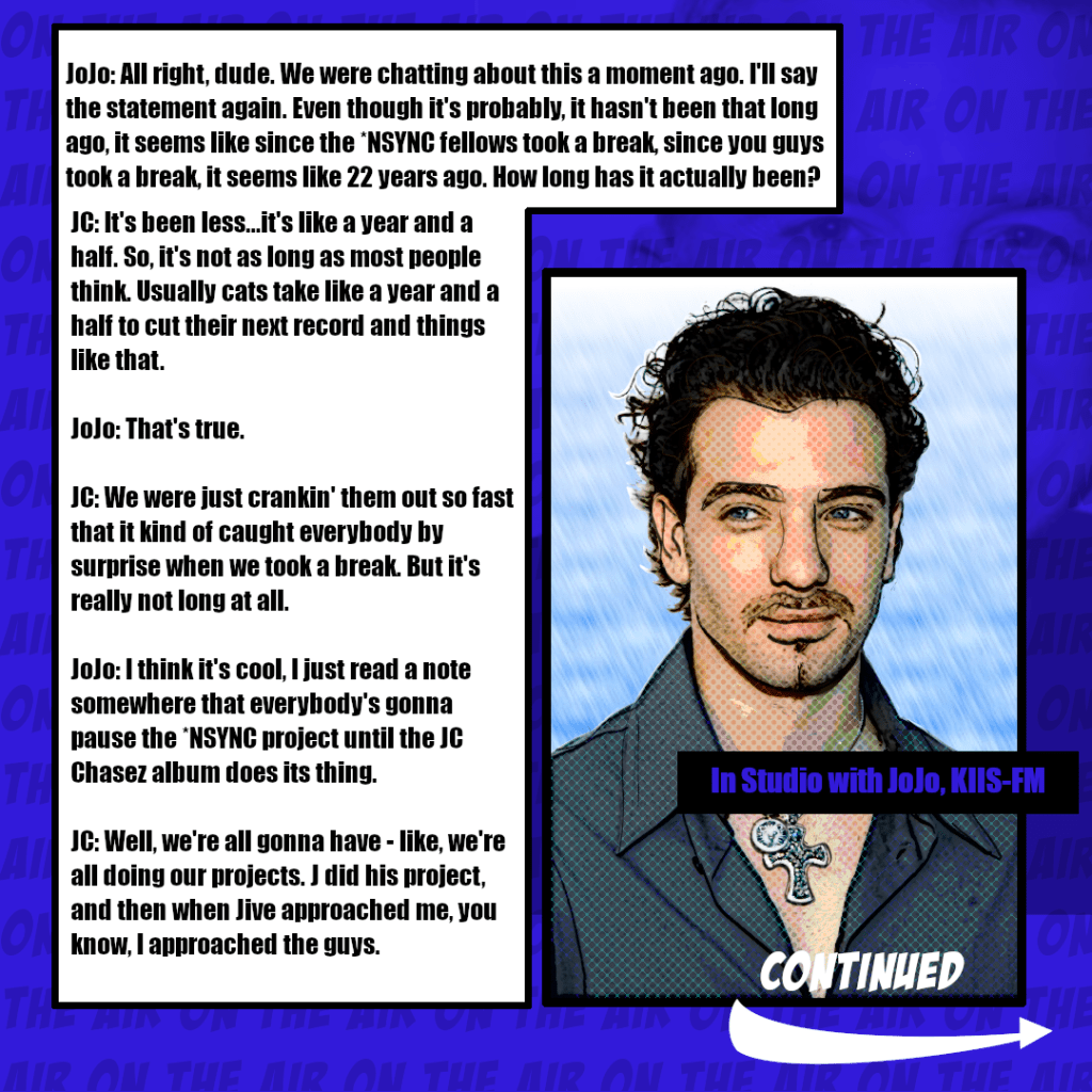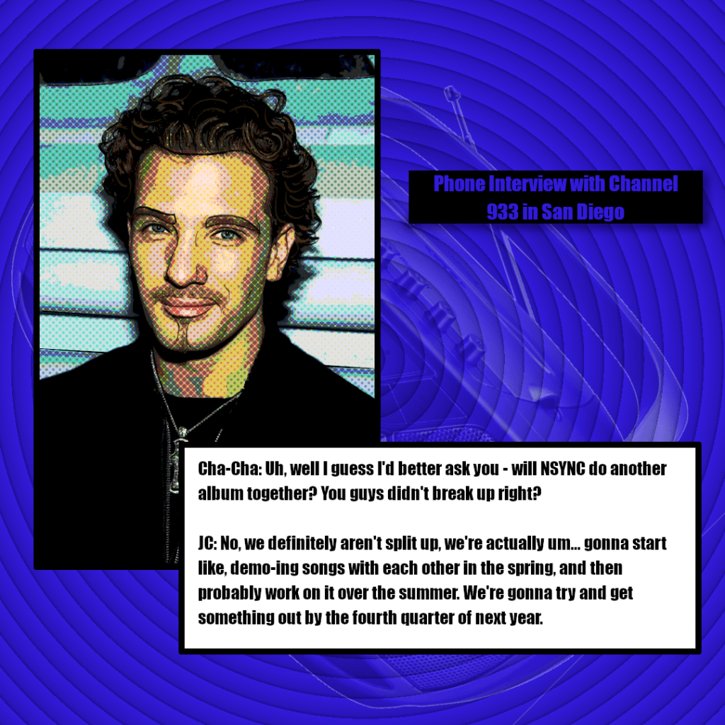 1, 2, and 3- The Vox Chasez website published the transcripts of interview JC Chasez did on KIIS-FM and Channel 993, respectively.