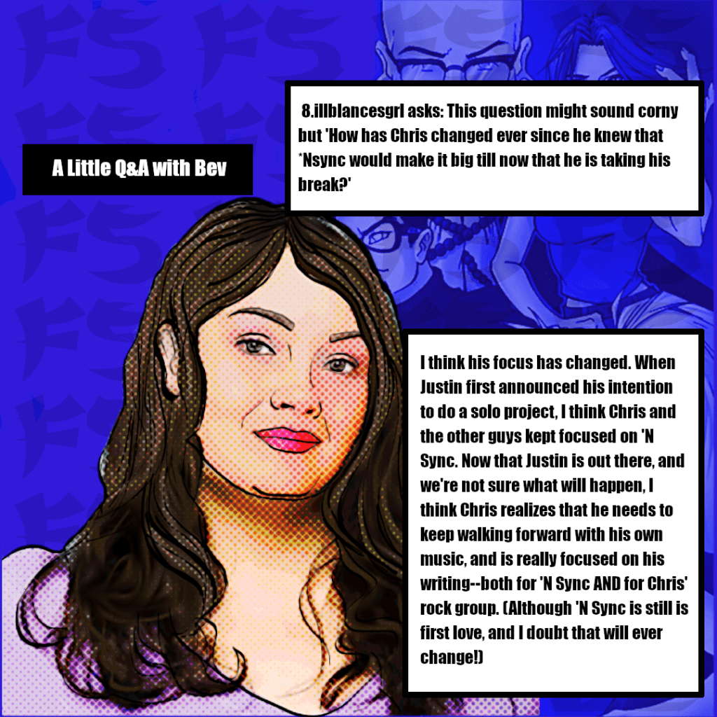 4 – Kirkpatrick.nu reposted an interview with Chris Kirkpatrick’s mother, Beverly Eustice. The interview was reportedly an exclusive for FuManSkeeto.com and its forum The Buzz.