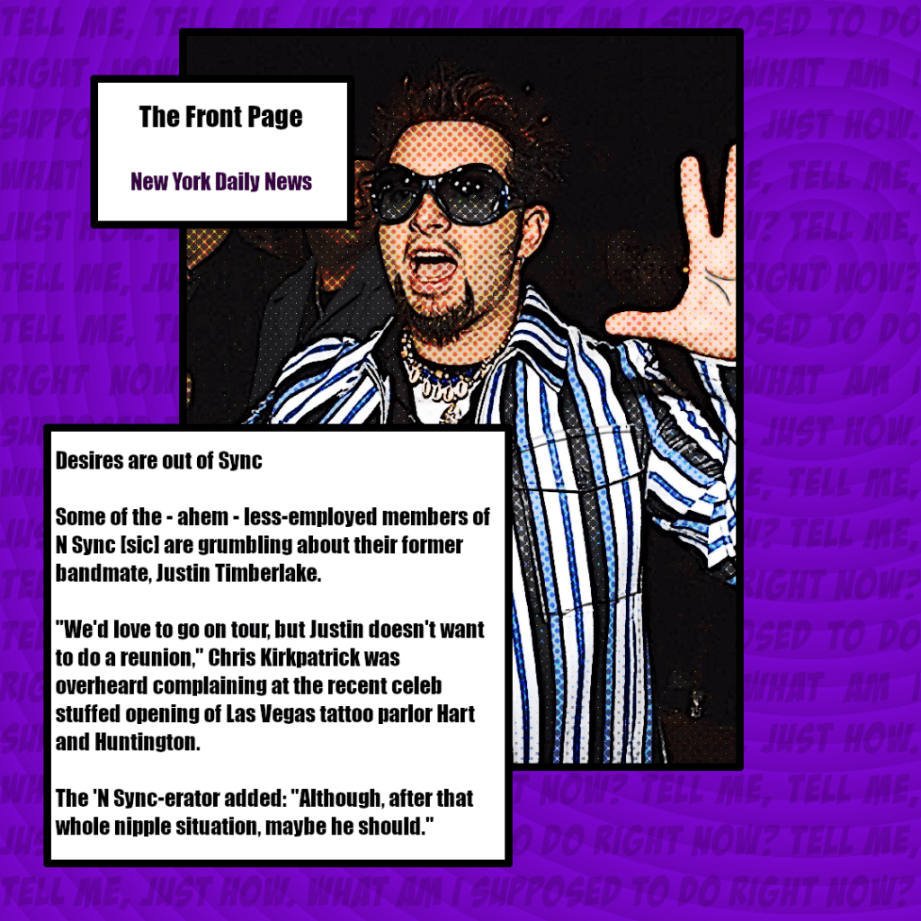 1 – The Front Page from New York Daily News claims that Chris Kirkpatrick was overheard saying that *NSYNC would love to tour again but Justin Timberlake didn’t want to.