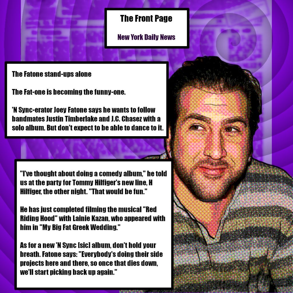 3 – The NewYork Daily News’ Front Page publishes a multi-part article featuring a blurb about a possible solo project from Joey Fatone.