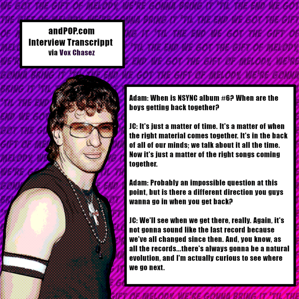 1 – AndPOP.com published an interview with JC Chasez. A transcript of the interview was posted on the Vox Chasez fan site with a date of 6/8/04.