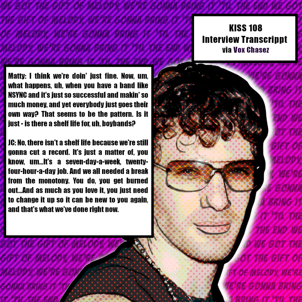 2 – The Vox Chasez fan site also published a transcript of a radio interview with KISS 108 Boston from 6/17/04.