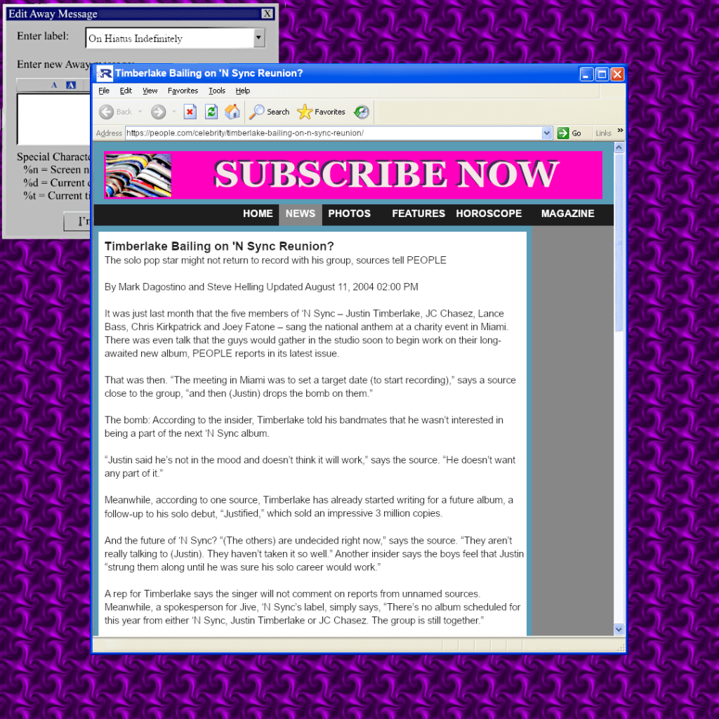 Current Link: https://web.archive.org/web/20041228204520/http://www.mtv.com/news/articles/1489894/20040803/n_sync.jhtml?headlines=true