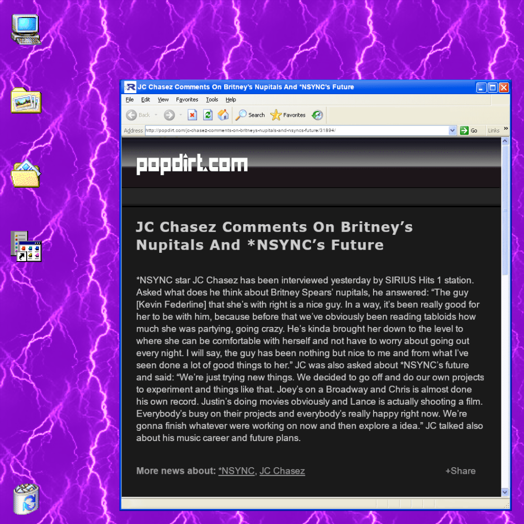 Current Link: https://web.archive.org/web/20200815103132/http://popdirt.com/jc-chasez-comments-on-britneys-nupitals-and-nsyncs-future/31894/ (full article)